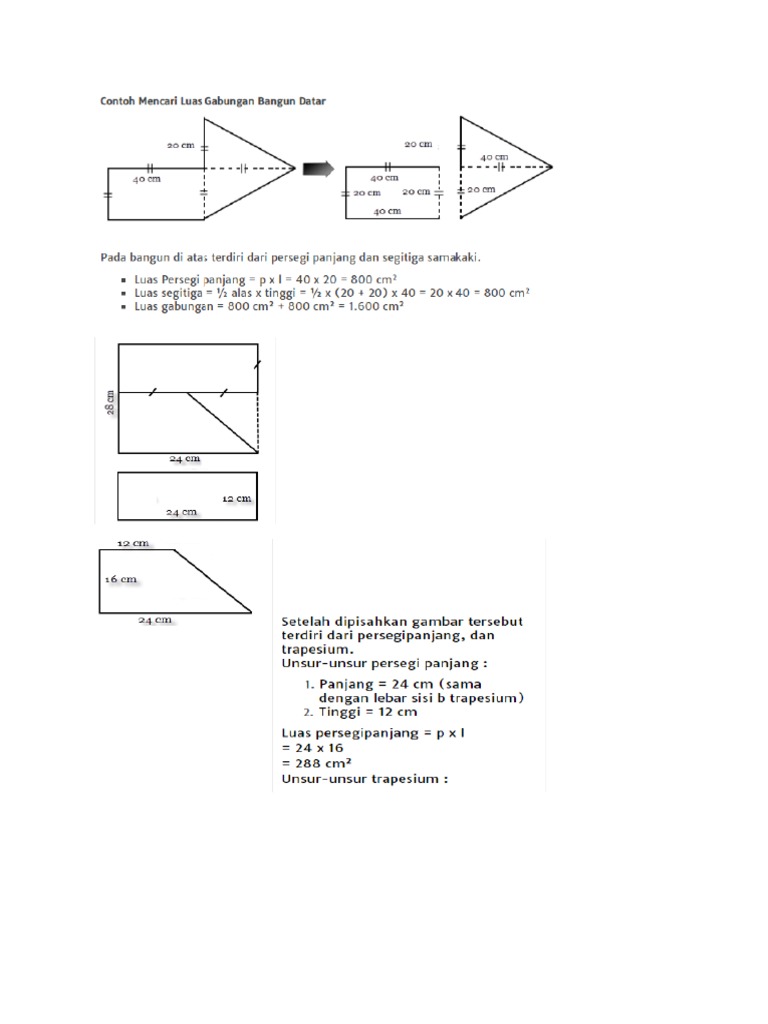 Cara Menghitung Luas Gabungan Bangun Datar from contoh123.info Mencari luas bangun datar gabungan segitiga persegi belah ketupat jajar genjang untuk mateatika sd. Pertama, kenali bangun apa saja yang membentuk gabungan bangun datar tersebut. Contoh soal volume gabungan kubus dan balok. Luas gabungan bangun datar youtube. Luas permukaan bangun gabungan cari terlebih. Luas gabungan bangun datar asa generasiku sumber : Sedangkan yang tidak terlihat atau yang berhimpitan tidak dihitung. Luas permukaan gabungan adalah menjumlahkan luas sisi terluar.